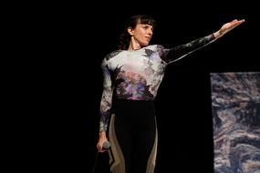 Nina Santes et Célia Gondol ont le pouvoir de nous transporter hors du théâtre. Comme une feuille, A Leaf, concert chorégraphique, traversée chantée et dansée, fait vibrer nos corps au son des chants magnétiques des deux complices. Bouche à bouche et nez à nez, elles conjuguent le féminisme et l’écologie pour replacer la tendresse et la fragilité au centre d’un monde qui s’évanouit ou d’un autre qui tarde à arriver. A Leaf nous donne alors quelques pistes pour avancer ensemble dans l’obscurité.